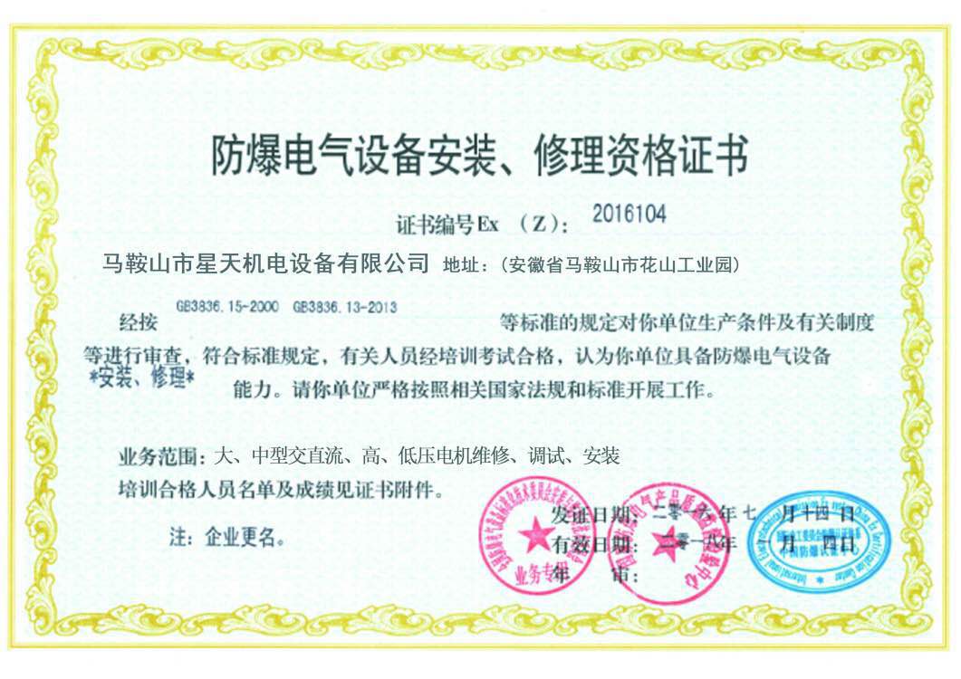 防爆電氣設(shè)備安裝修理資格證書(shū)